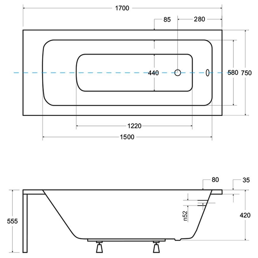 Wanna Talia 170/75 to przestronna i funkcjonalna wanna prostokątna, wykonana z trwałego akrylu sanitarnego, odpornego na zarysowania, przebarwienia i łatwego w utrzymaniu czystości. Jej wymiary – 170 × 75 cm, wysokość 55,5 cm i pojemność 190 l – gwarantują komfortową kąpiel dla całej rodziny. Głębokość 42 cm zapewnia pełne zanurzenie, a waga 20,3 kg ułatwia transport i montaż. W komplecie znajduje się solidny stelaż, który zapewnia stabilność i bezpieczeństwo. Ergonomia, funkcjonalność i elegancki design w jednym.
