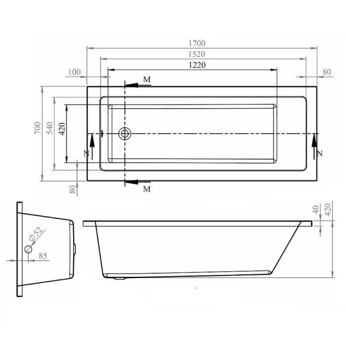 Wanna Viva 170x70 materiał wykonania to akryl sanitarny. Wanna jest sprzedawana osobno - bez obudowy i stelaża.