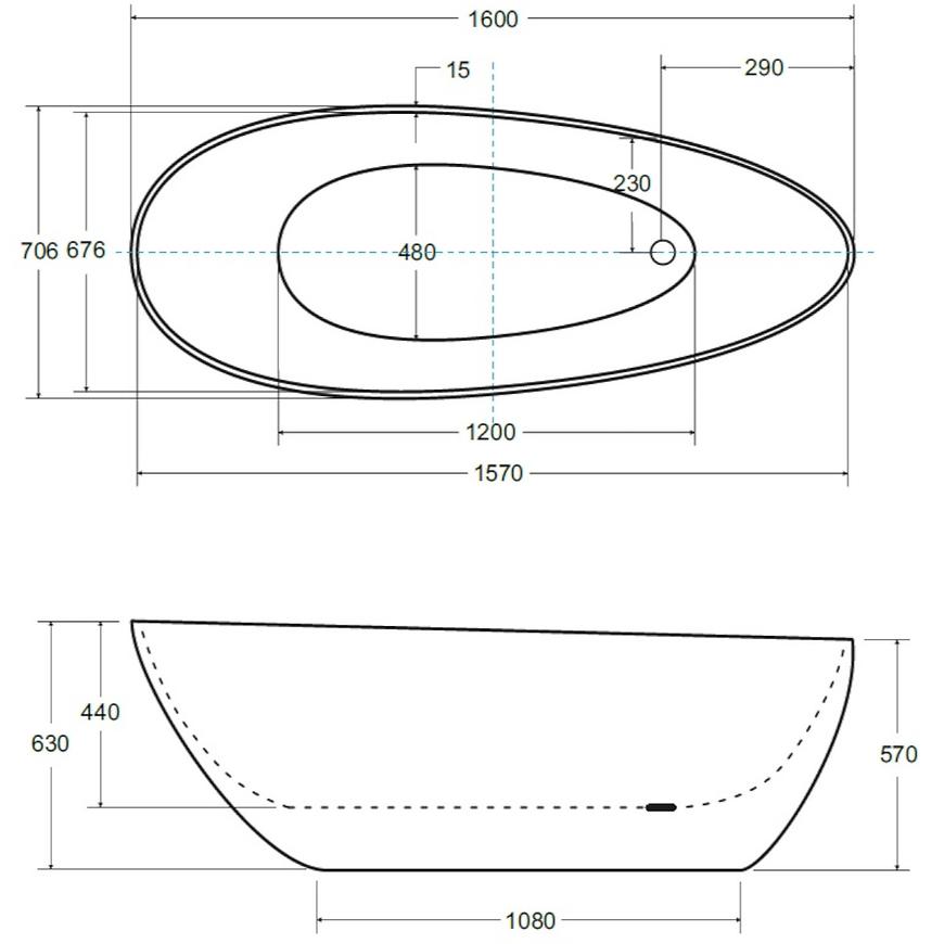 Specyfikacja wanny wolnostojącej Goya 160x70