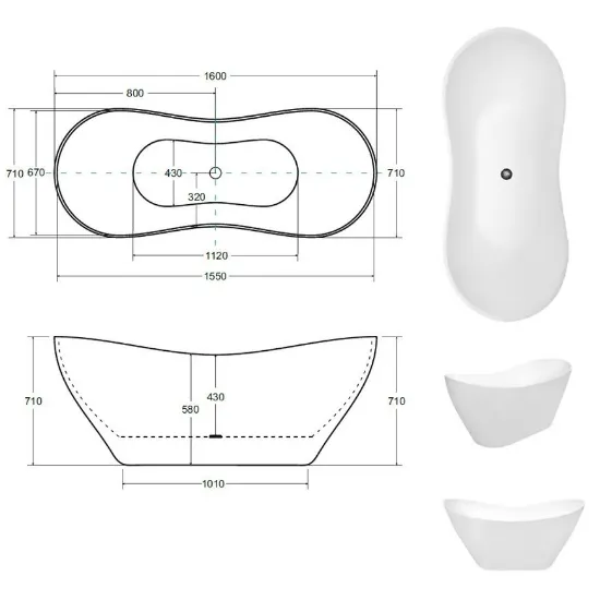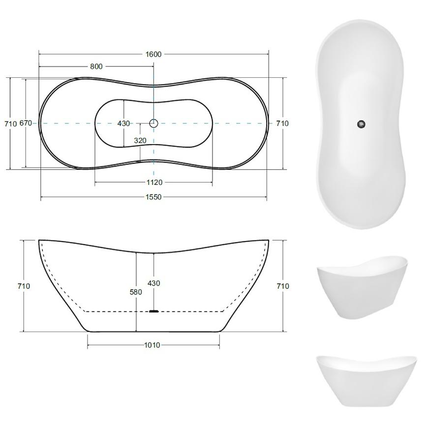 Specyfikacja wanny wolnostojącej Viya 160x70