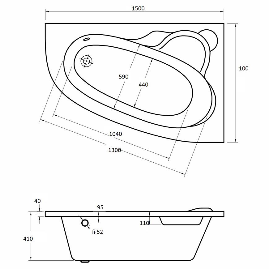 Wanna z hydromasażem Timor 150/100 P marki AQUA MERCADO to komfortowe i funkcjonalne rozwiązanie do nowoczesnych łazienek. Jej asymetryczny kształt oraz wymiary 150 × 100 cm sprawiają, że idealnie dopasuje się do narożnej zabudowy w wersji prawej. Wykonana z wytrzymałego akrylu sanitarnego, gwarantuje trwałość i estetyczny wygląd. Wanna wyposażona jest w 16 dysz masujących – 8 wodnych i 8 powietrznych, zasilanych przez mocne pompy: wodną 540 W oraz powietrzną 500 W. System pneumatycznego sterowania zapewnia prostą i niezawodną obsługę. Model ma pojemność 190 l, głębokość 41 cm i dostarczany jest w komplecie ze stelażem oraz syfonem. Producent oferuje 2-letnią gwarancję.