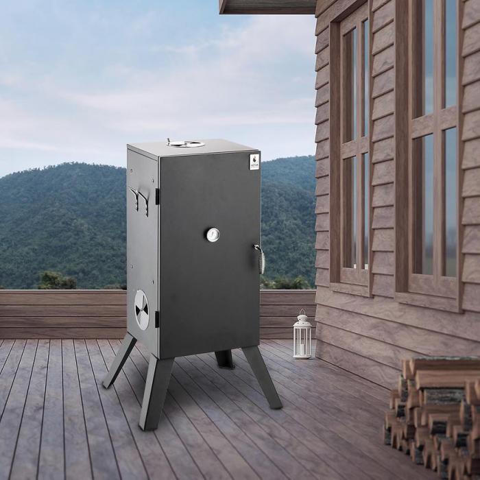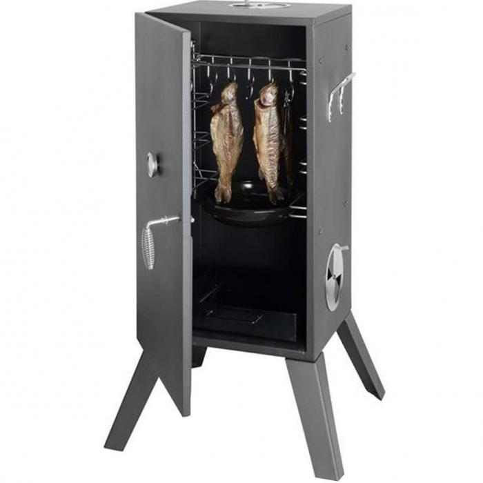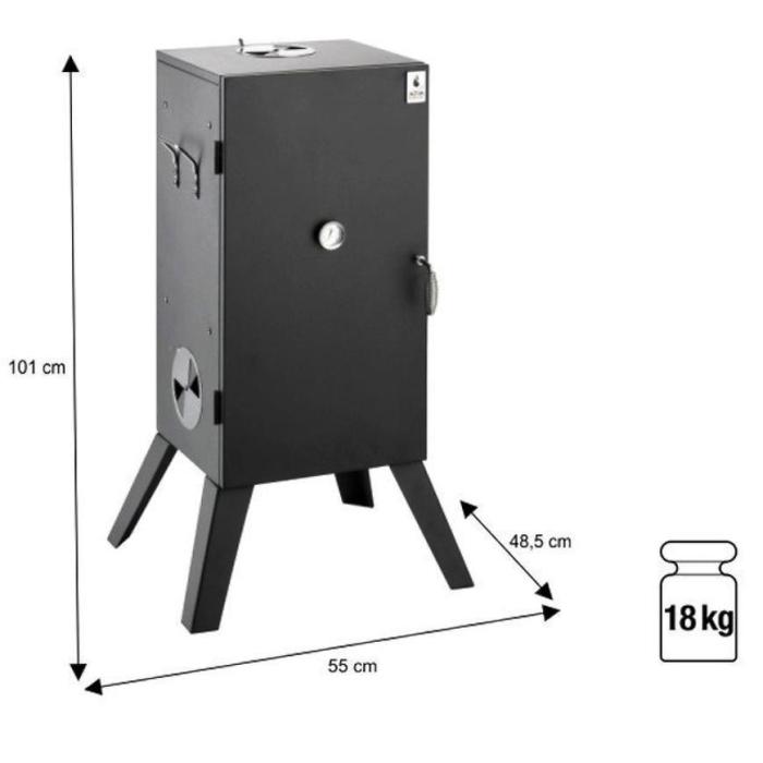 Wędzarka wykonana z lakierowanej blachy stalowej. Posiada chromowany ruszt i termometr kontrolujący temperaturę w środku.