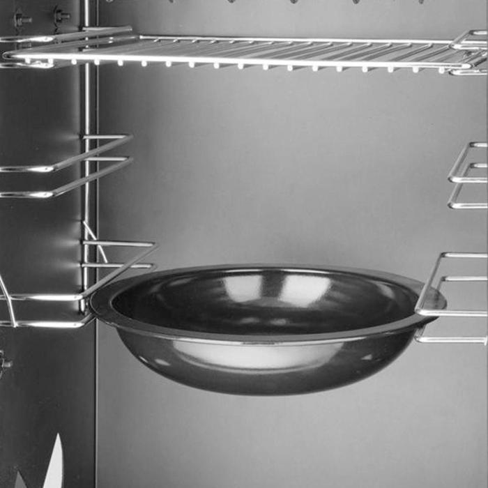 Wymiary powierzchni do grillowania: 36x31 cm. Na dole wędzarki znajduje się wyjmowany piec, emaliowany pojemnik na zrębki i trzy ruszty 36x31cm.