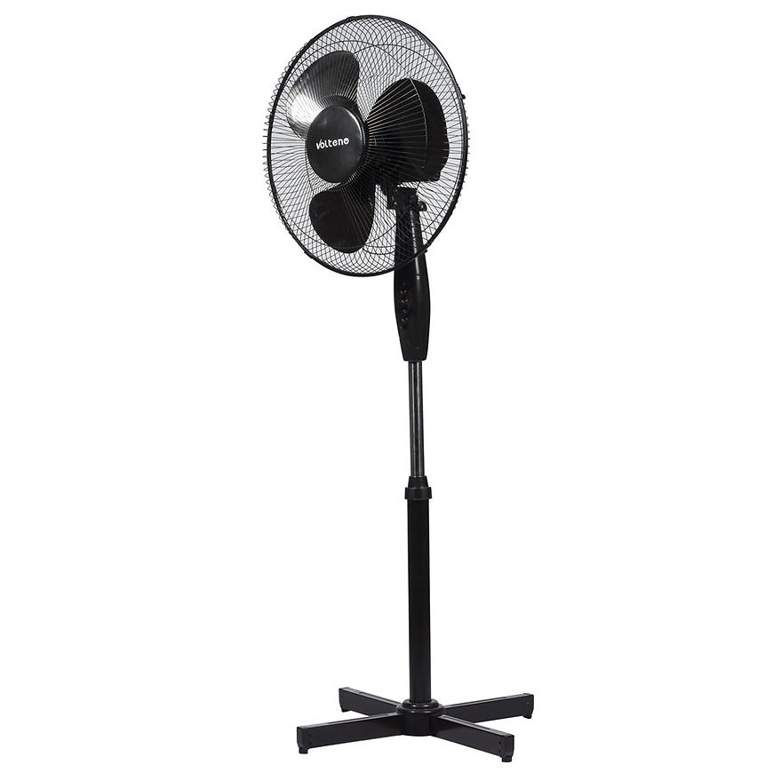 Podstawa wentylatora to krzyżak o rozmiarze 60 cm, co zapewnia stabilność i pewność, że urządzenie nie przewróci się podczas pracy. Dzięki temu wentylator Floor 16" Black VO0027 40W to nie tylko skuteczne źródło ochłody, ale także funkcjonalny element wystroju wnętrza.