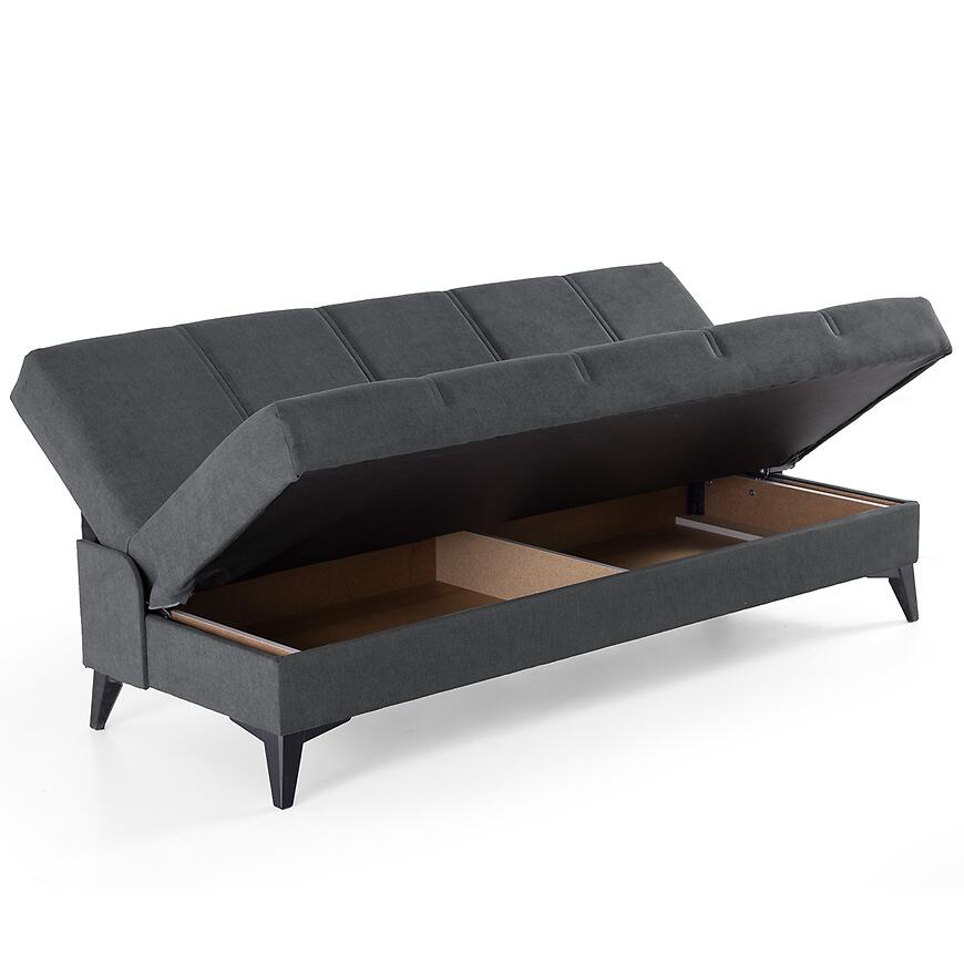 Wersalka wyposażona jest w praktyczny schowek na pościel, który pozwala na wygodne przechowywanie kołder i poduszek, pomagając utrzymać porządek w pomieszczeniu.