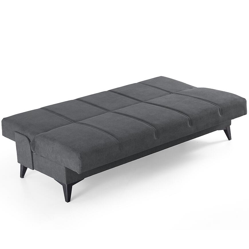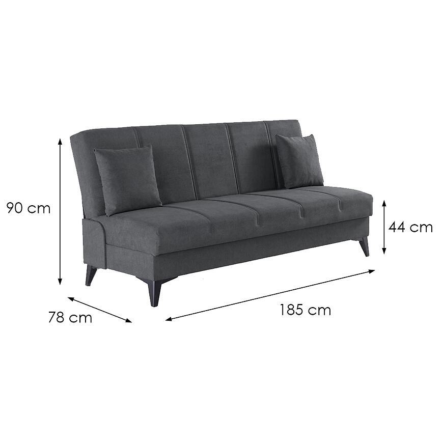 Wypełnienie ze sprężyn bonell zapewnia odpowiednie podparcie i komfort siedzenia oraz spania. Czarne nogi i solidna konstrukcja podkreślają klasyczny charakter mebla oraz jego trwałość w codziennym użytkowaniu.