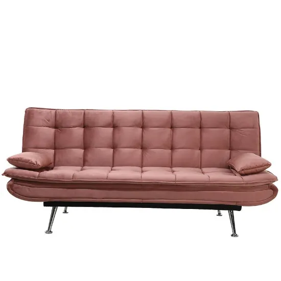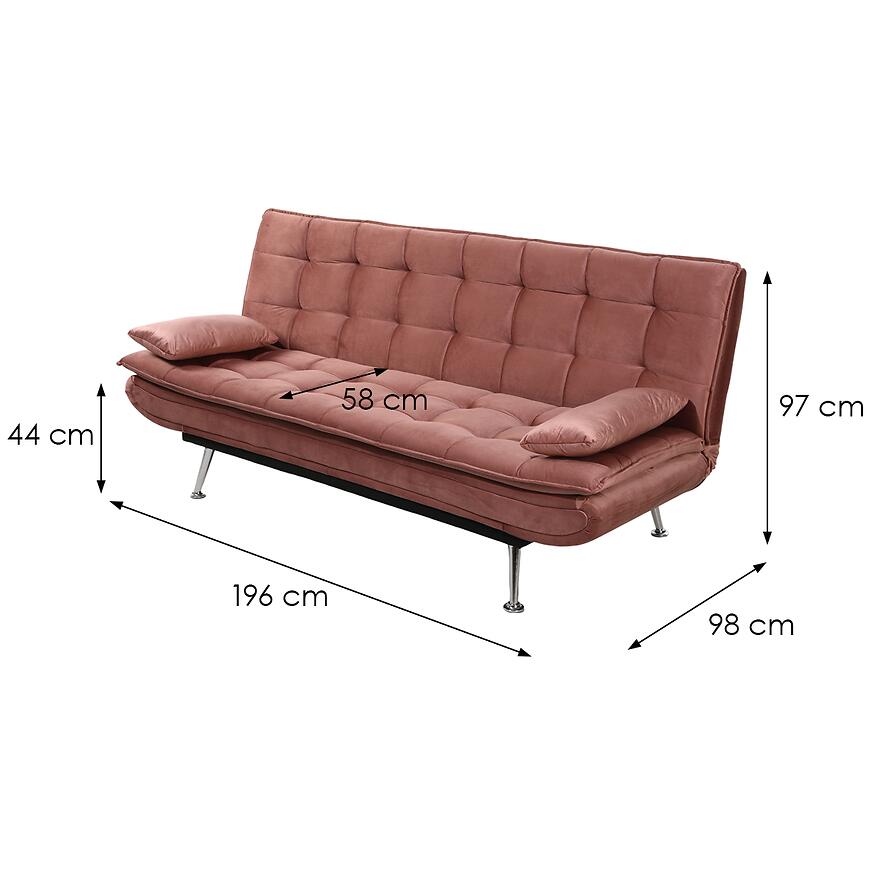 Tapicerka wykonana jest z trwałej tkaniny w przyjemnym różowym odcieniu, który wprowadza do wnętrza ciepło i subtelny akcent kolorystyczny. W komplecie znajdują się poduszki, które zwiększają komfort siedzenia i podkreślają estetykę mebla. Cambridge HC226-23 charakteryzuje się prostą, elegancką formą – brak regulowanych podłokietników, zagłówka czy pojemnika na pościel pozwala utrzymać minimalistyczny design. Mebel wymaga samodzielnego złożenia, co ułatwia transport i wniesienie do pomieszczenia.