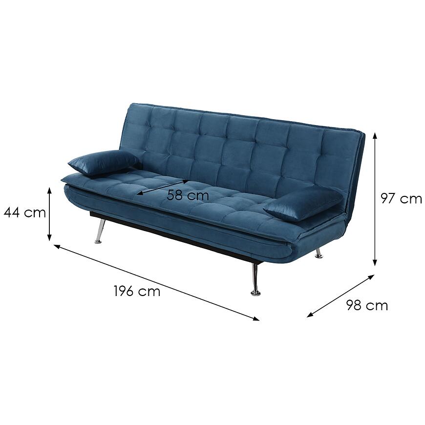 Mechanizm wersalkowy z automatem umożliwia szybkie i wygodne rozłożenie mebla do funkcji spania, tworząc przestrzeń o wymiarach 120x196 cm. Dzięki temu Wersalka Cambridge HC226-45 sprawdza się doskonale w roli codziennego miejsca do spania. Mebel wyposażony jest w solidne, chromowane nogi, które stabilizują konstrukcję i dodają elegancji, podkreślając nowoczesny charakter mebla.
