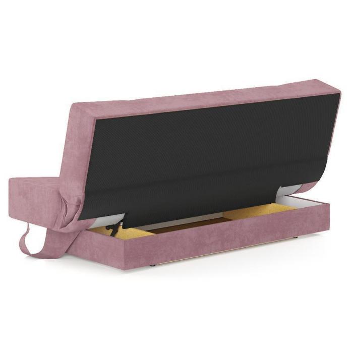 Wersalka Carmen Monolith 63 w kolorze różowym to praktyczna i funkcjonalna kanapa zaprojektowana w nowoczesnym stylu. Mebel ten posiada funkcję spania oraz praktyczny pojemnik na pościel. Po rozłożeniu to okazjonalne miejsce do spania o wymiarach 115x190 cm. System rozkładnia jest bardzo prosty- wersalkowy. Wypełnienie siedziska oraz oparcia mebla stanowią sprężyna bonell, które zwiększają komfort podczas codziennego użytkowania. Świetnie sprawdzi się zarówno w salonie jak i pokoju dziennym, pełniąc funkcję miejsca spotkań.