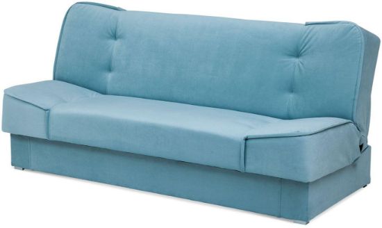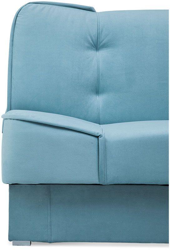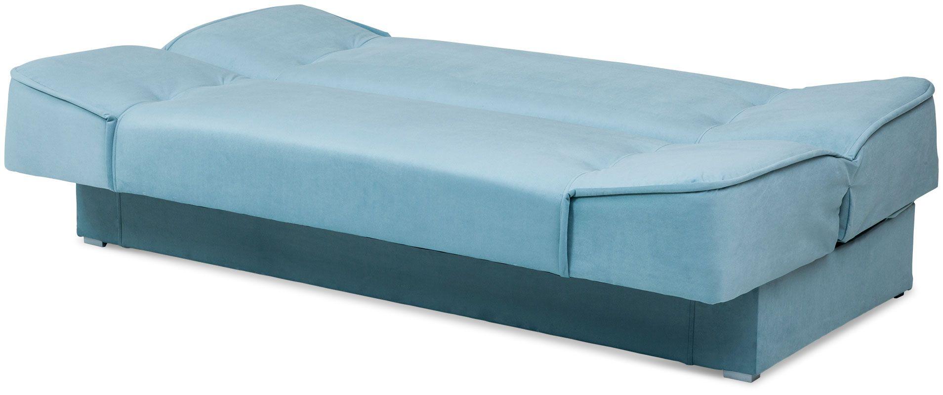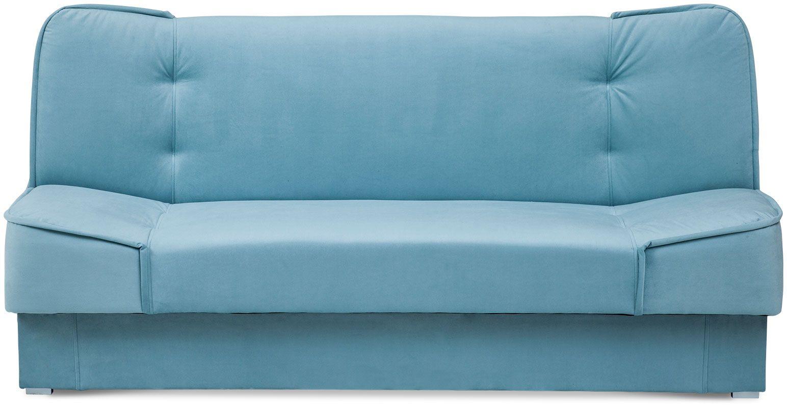 Wersalka Ella jasnoniebieska to połączenie wygody i wyszukanego designu. Jasnoniebieski kolor tapicerki oraz łagodne linie nadają kanapie eleganckiego i subtelnego charakteru. Nóżki w kolorze srebrnym są delikatnym wykończeniem, podkreślającym elegancki styl tego mebla. Brak podłokietników zwiększa powierzchnię użytkową kanapy. W siedzisku oraz oparciu zastosowano sprężyny bonellowe, które podnoszą komfort użytkowania mebla. Model Ella Abra jasnoniebieska, jest to sofa z funkcją spania, która łatwo przekształca się w wygodne dwuosobowe łóżko. Dodatkowy duży pojemnik na pościel jest praktycznym rozwiązaniem, które ułatwi utrzymanie porządku w pokoju dziennym. Ella wersalka jasnoniebieska to ciekawy akcent kolorystyczny do minimalistycznego salonu, jednak równie dobrze sprawdzi się także w niecodziennych aranżacjach wnętrz.