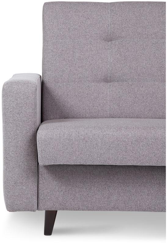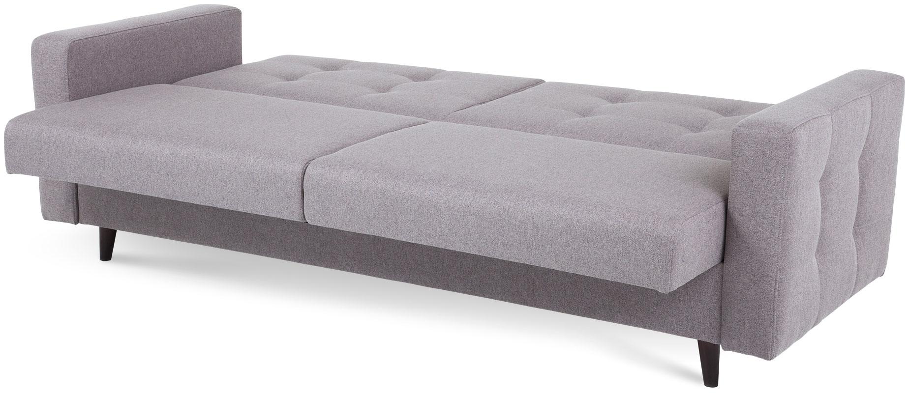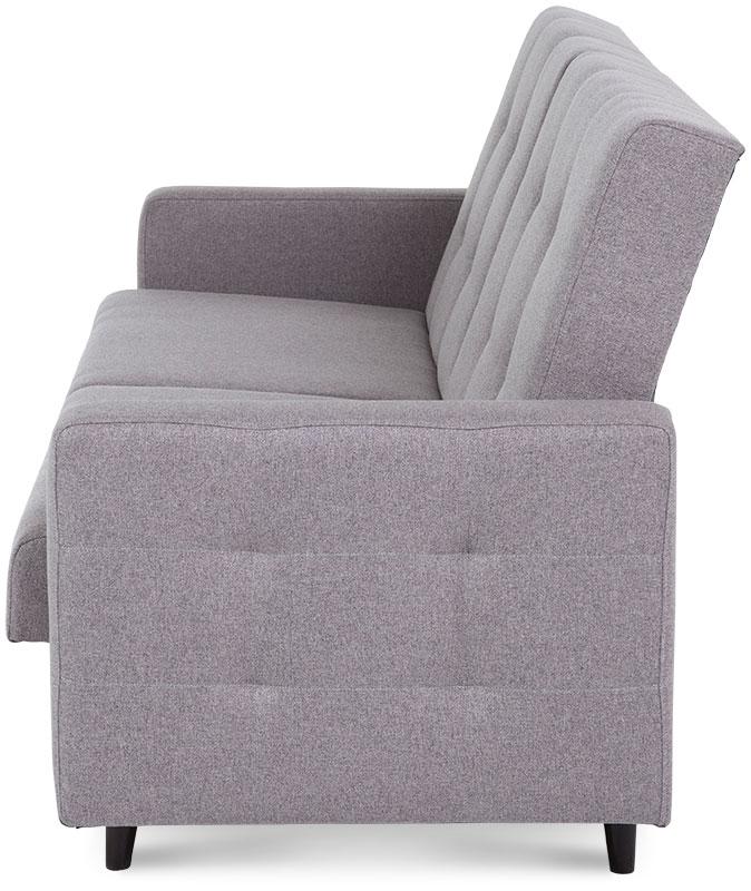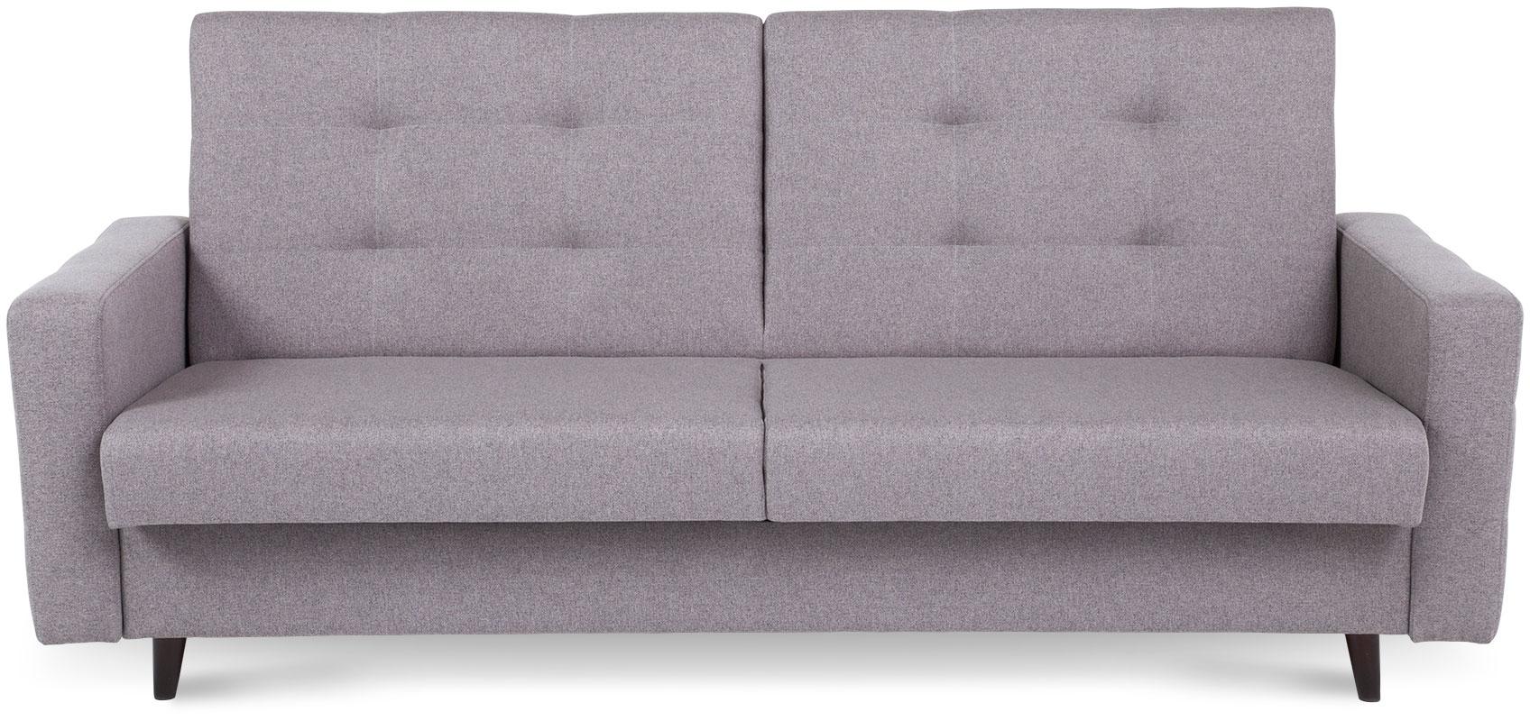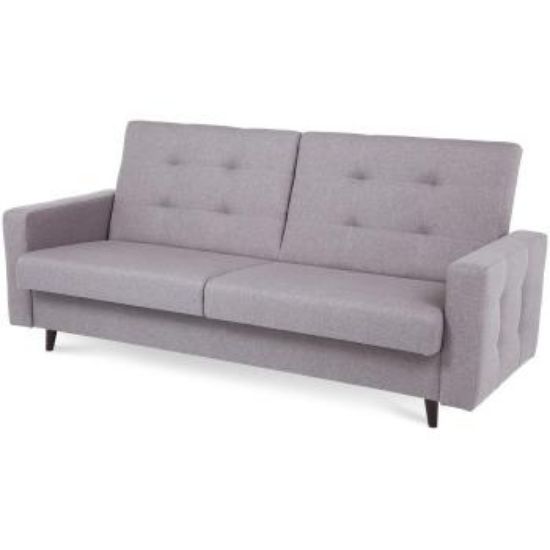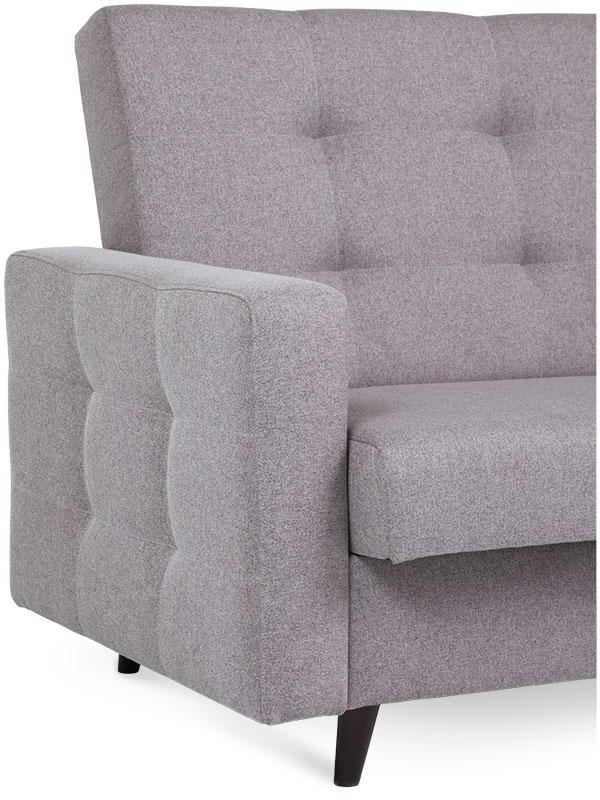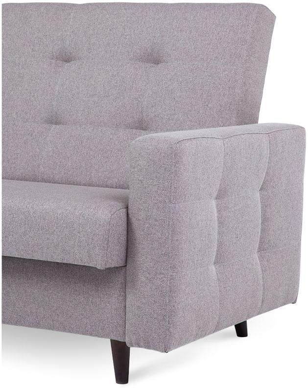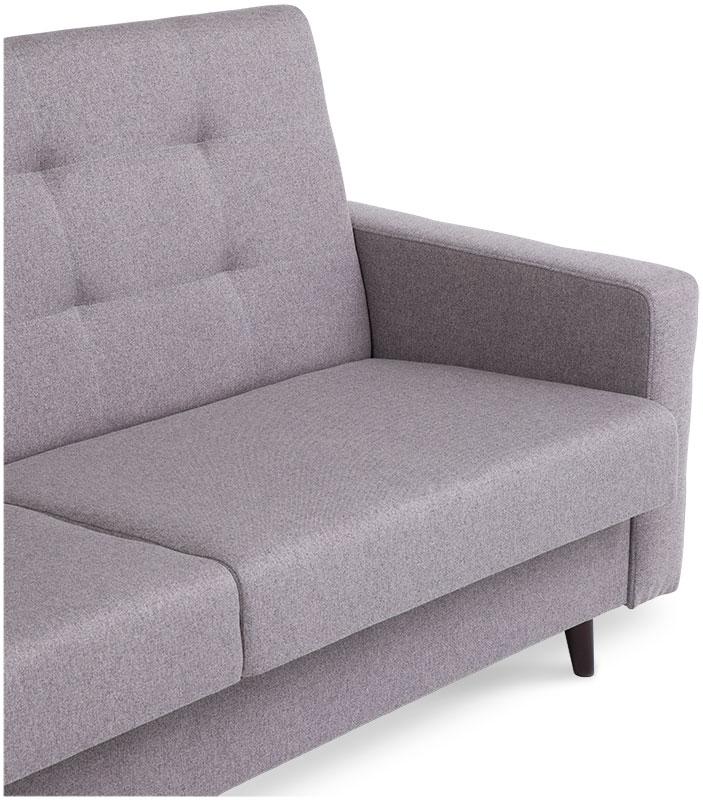 Wersalka Kendy będzie się doskonale prezentować w salonie, pokoju dziennym lub gościnnym urządzonym w nowoczesnym stylu. Jej największymi atutami wizualnymi są minimalistyczne wcięcia i prosta, geometryczna forma. Mebel posiada pojemnik na pościel, który umożliwia przechowywanie dodatkowych poduszek, kołder lub koców. Powierzchnia spania wynosi 124 x 190 cm i jest odpowiednia dla dwóch osób. Wersalka Kendy rozkłada się w sposób typu Click-Clack, co ułatwia specjalnie zamontowany automat. W siedzisku i oparciu zastosowano sprężyny faliste, dzięki czemu model zapewnia wygodę wypoczynku. Dodatkowo wersalka została wyposażona w drewniane nóżki barwione na kolor orzech. Uniwersalny design mebla przekłada się na jego wieloletnie użytkowanie i sprawia, że zawsze pasuje do aktualnych trendów w aranżacji wnętrz.