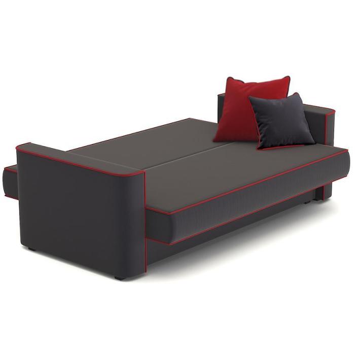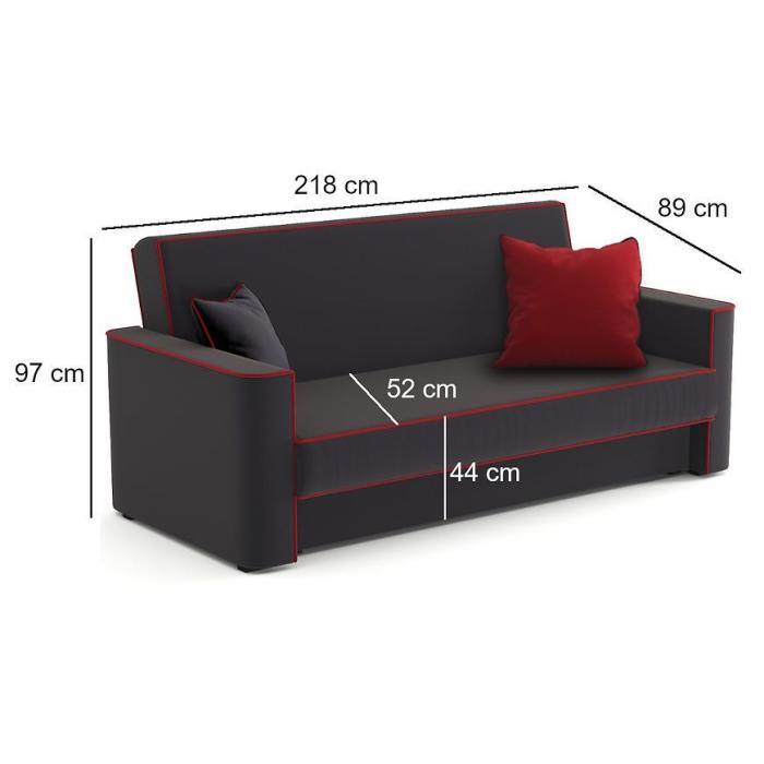 Po rozłożeniu kanapy otrzymujemy optymalną dla dwóch osób powierzchnię o wymiarach 116x190 cm. Dodatkowy pojemnik na pościel to bardzo praktyczne rozwiązanie zwłaszcza do małego mieszkania. Zastosowany sposób wspomagający rozkładanie to automat wersalkowy.