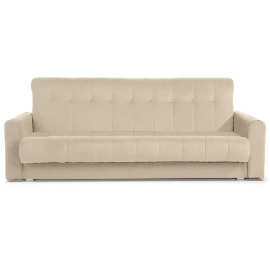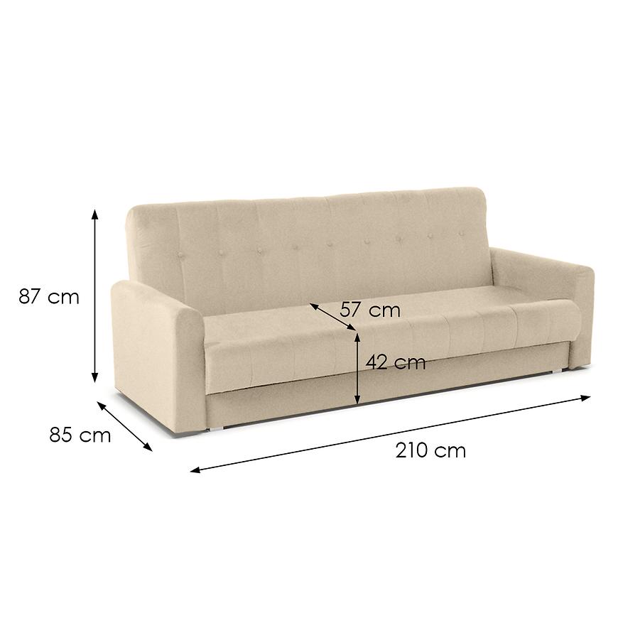 Wersalka Marcin Herbi 55 beż to funkcjonalna sofa z funkcją spania o wymiarach 210×85×87 cm. Tapicerowana beżową tkaniną, posiada siedzisko wypełnione sprężyną falistą, wysokość siedziska 42 cm i głębokość 57 cm. Funkcja spania oferuje powierzchnię 115×190 cm, a automat wersalkowy ułatwia szybkie rozkładanie. Wersalka posiada jeden schowek na pościel, chromowane nogi i wymaga złożenia. Produkt nie zawiera poduszek ani regulowanych elementów, zapewniając prosty, nowoczesny wygląd i wygodę codziennego użytkowania.