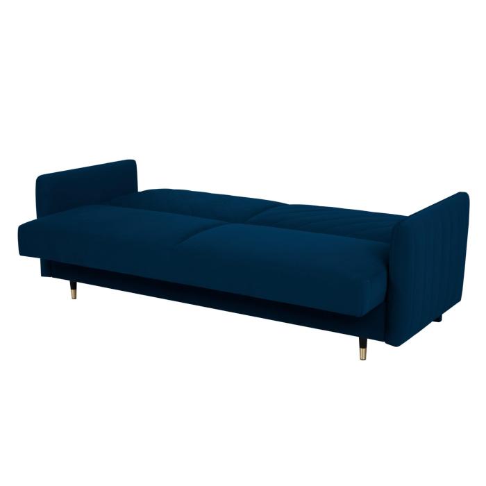 Po rozłożeniu kanapy otrzymujemy optymalną dla dwóch osób powierzchnię spania o wymiarach 120x190 cm. Dodatkowym udogodnieniem jest pojemnik na pościel - to dobre rozwiązanie dla właścicieli mniejszych mieszkań. W siedzisku i oparciu wersalki zastosowano sprężyny faliste oraz piankę, które poprawiają komfort podczas odpoczynku.