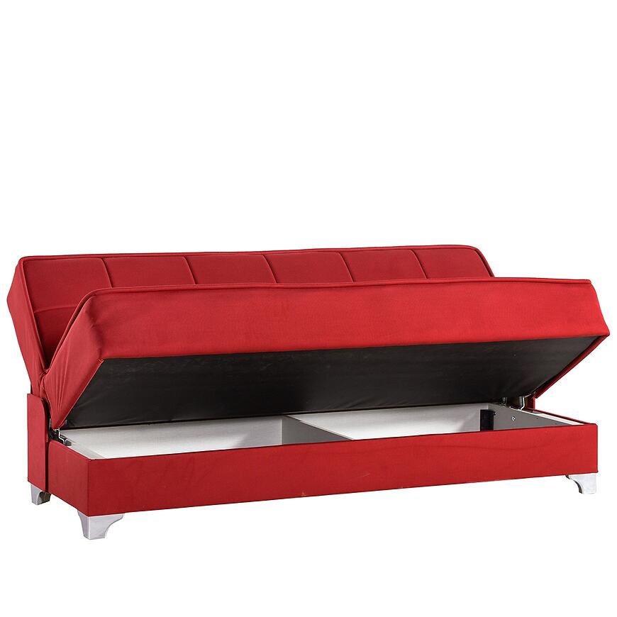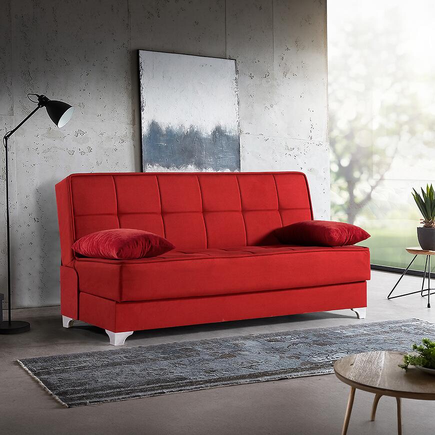 Wersalka Neon Lam 48 to praktyczny mebel wypoczynkowy w klasycznym stylu, który sprawdzi się w salonie, pokoju dziennym lub gościnnym. Czerwona tapicerka z tkaniny nadaje jej wyrazisty charakter i wyróżnia wnętrze, jednocześnie zachowując funkcjonalność codziennego użytkowania.