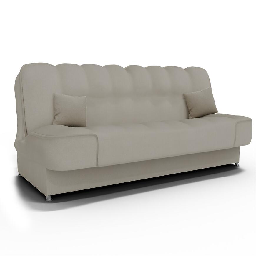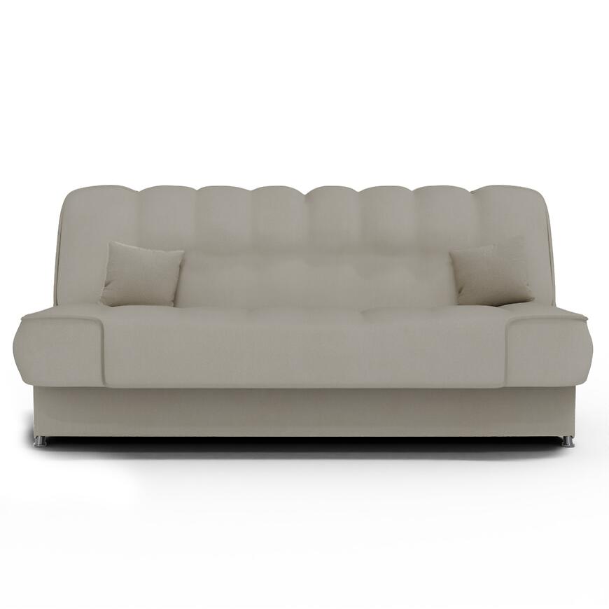 Tapicerka z tkaniny w kolorze beżowym jest przyjemna w dotyku i łatwa do zestawienia z innymi elementami wyposażenia wnętrza. Wersalka posiada nogi wykonane z tworzywa sztucznego, które zapewniają stabilność mebla i ułatwiają utrzymanie czystości pod nim. Brak regulowanego oparcia, podłokietników i zagłówka podkreśla klasyczną, prostą formę.