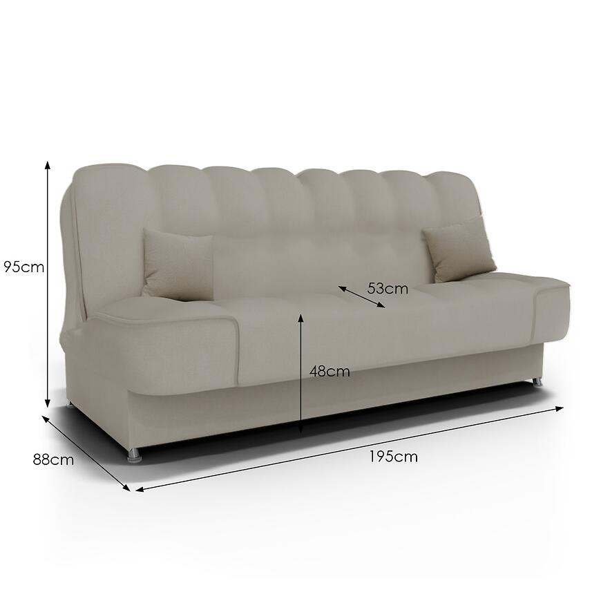 Szerokość 195 cm, głębokość 88 cm i wysokość 95 cm zapewniają komfort codziennego użytkowania, a wysokość siedziska 48 cm ułatwia wstawanie i siadanie. Wersalka Patryk Crown 2 została zaprojektowana z myślą o wygodzie oraz praktycznym wykorzystaniu przestrzeni.