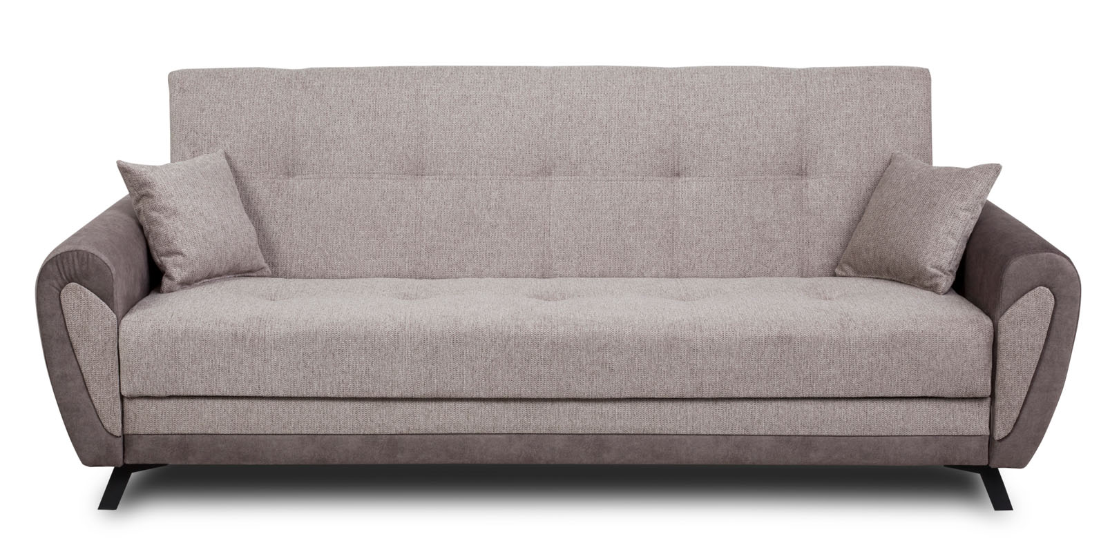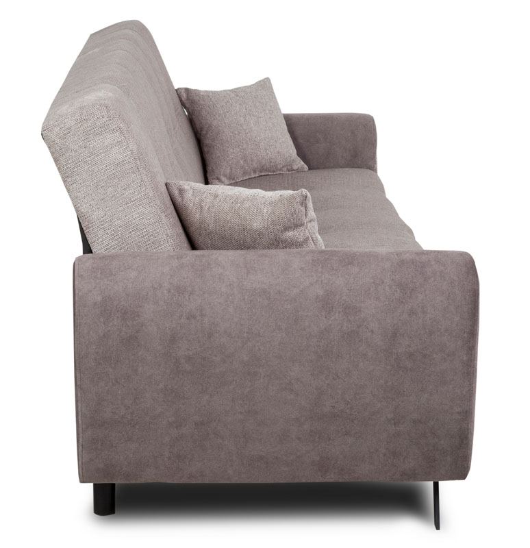 Sposób rozkładania typu "Clic-Clack" sprawia, że zmiana funkcji mebla jest szybka i łatwa. Wersalka posiada również boki, co nadaje jej nowoczesny i elegancki wygląd. Czarne, metalowe nóżki dodają subtelnej lekkości całej konstrukcji, tworząc harmonijny design.