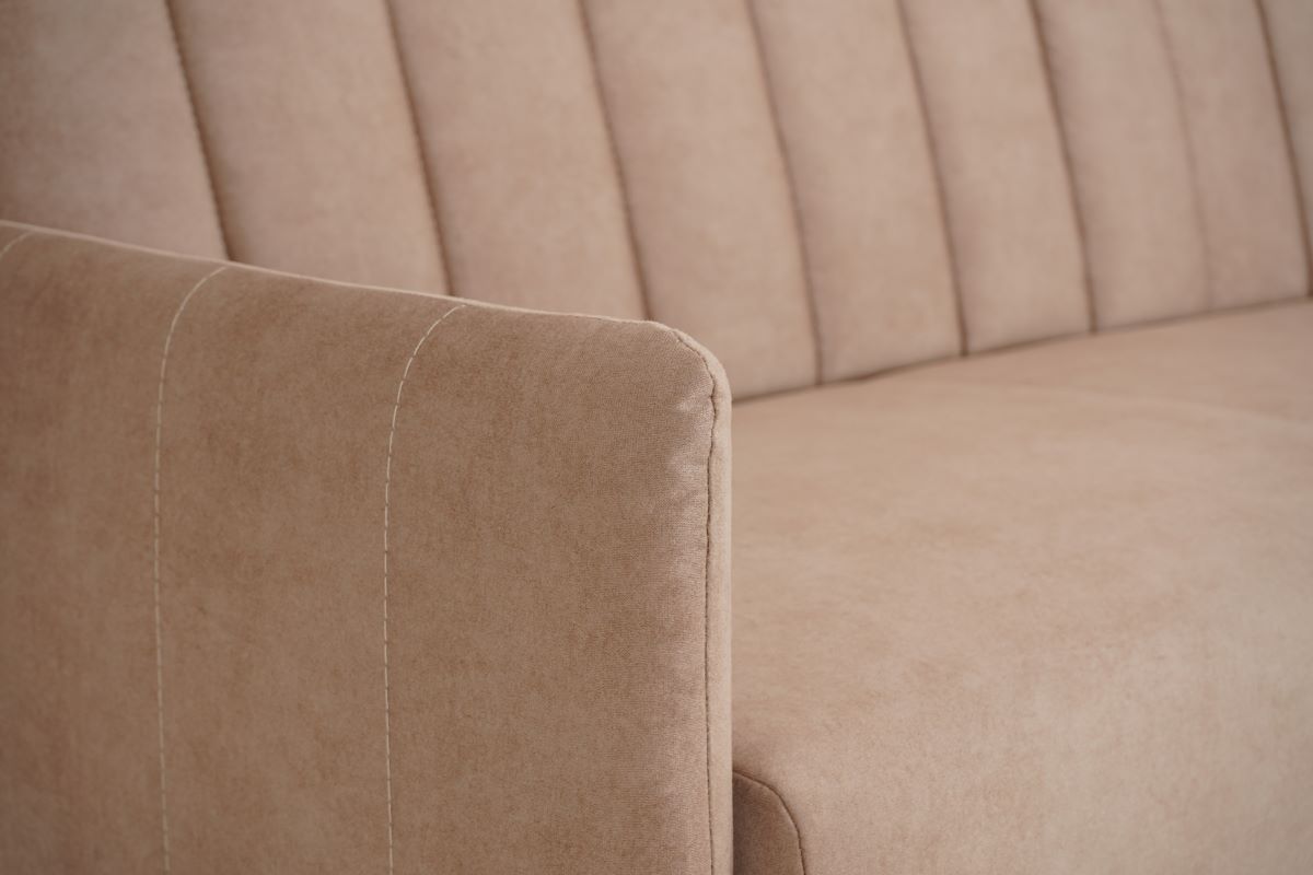 Wykonana w tkaninie Zetta, w kolorze beżowym, wersalka Ellen to prawdziwa oaza luksusu. Tkanina ta, będąca rodzajem weluru, charakteryzuje się przyjemnym w dotyku meszkiem, co sprawia, że mebel nie tylko prezentuje się stylowo, ale również zapewnia komfortowy wypoczynek. Technologia Nano Block zastosowana w produkcji tkaniny ogranicza wchłanianie rozlanych płynów, co sprawia, że utrzymanie mebla w nienagannej czystości staje się łatwiejsze. Tkanina jest również odporna na mechacenie i ścieranie, co potwierdza wysoką jakość materiałów użytych do produkcji.