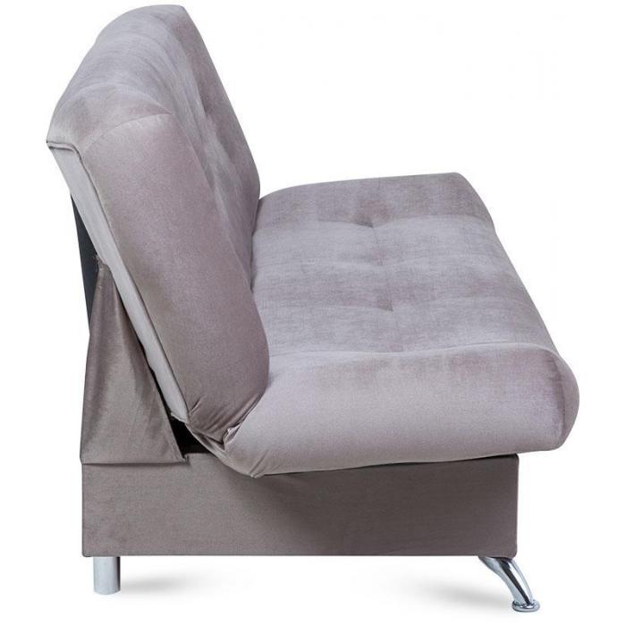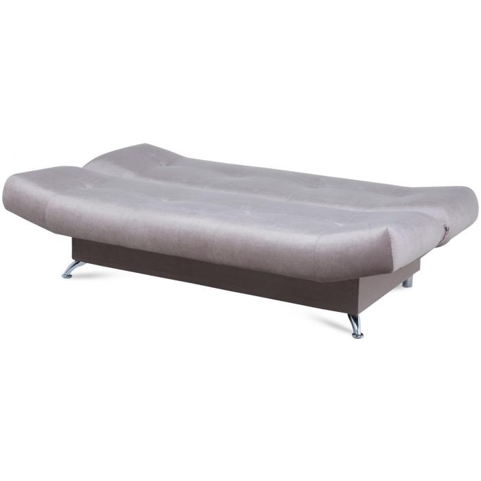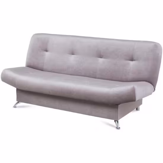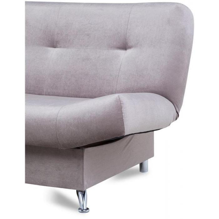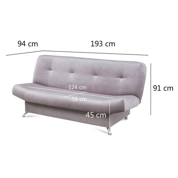Trzyosobowa wersalka Emmy z pojemnikiem na pościel i funkcją spania. Sposób rozkładania clic-clac. Po rozłożeniu uzyskujemy powierzchnię spania o wymiarach 124x193 cm. Konstrukcja wersalki oparta na bonellu. Jako element dekoracyjny zostały zastosowane pikowania na siedzisku i oparciu oraz wysokie, chromowane nóżki.