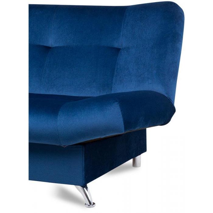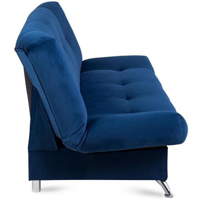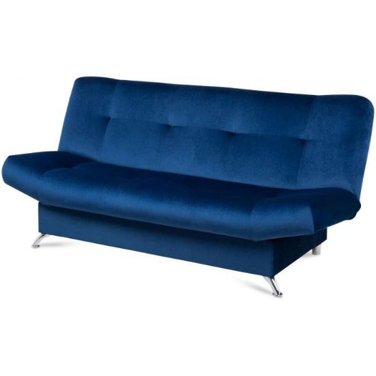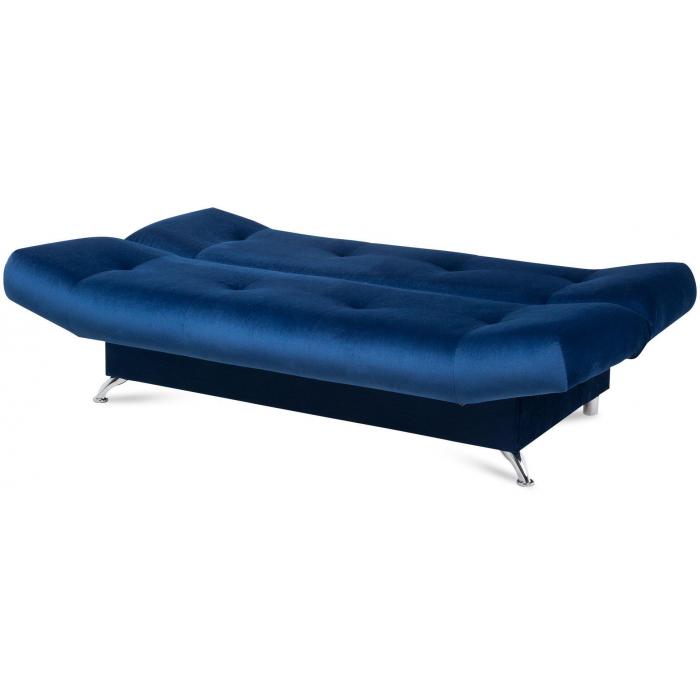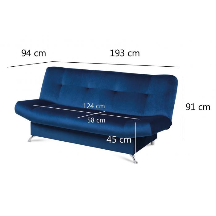 Trzyosobowa wersalka Emmy z pojemnikiem na pościel i funkcją spania. Sposób rozkładania clic-clac. Po rozłożeniu uzyskujemy powierzchnię spania o wymiarach 124x193 cm. Konstrukcja wersalki oparta na bonellu. Jako element dekoracyjny zostały zastosowane pikowania na siedzisku i oparciu oraz wysokie, chromowane nóżki.