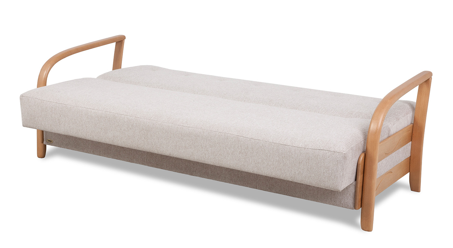 Nie można również zapomnieć o eleganckich, giętych poręczach wykonanych z drewna bukowego. Zostały one pokryte ekologicznymi lakierami i bejcami wodnymi, co nie tylko podkreśla naturalne piękno drewna, ale także czyni wersalkę produktem przyjaznym dla środowiska. W produkcji mebla zastosowano również ekologiczne kleje wodne, co potwierdza dbałość producenta o aspekty ekologiczne.
