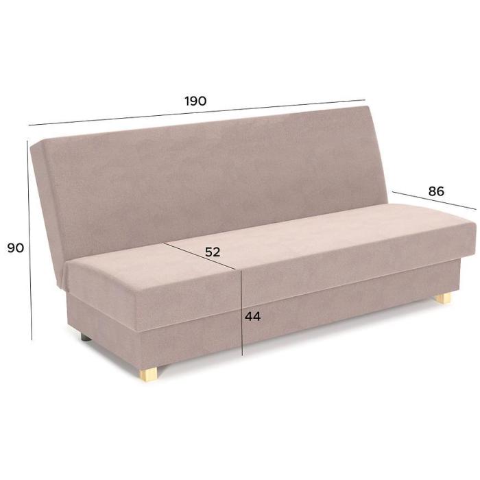 Wersalka rozkładana Salsa z funkcją spania to idealne rozwiązanie do niewielkich pomieszczeń. Mebel został wykonany z tkaniny, a w meblu zastosowano sprężyna bonell. Po rozłożeniu to okazjonalne miejsce do spania o wymiarach 116x190 cm posiadający automat wersalkowy. Ponadto posiada pojemnik, do którego można schować pościel, dodatkowe koce czy też poduszki. Niewielki nóżki zapewniają stabilność mebla. Sofa będzie idealnym wyborem dla miłośników minimalistycznych form i eleganckiej prostoty. Sofa ta idealnie dopasuje się zarówno do tradycyjnych, jak i tych bardziej nowoczesnych wnętrz.