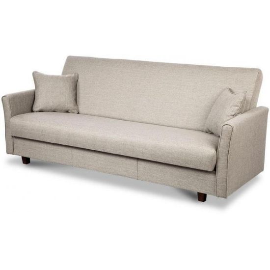 Klasyczna wersalka Sharon stanowi uniwersalny wypoczynek, doskonały dla całej rodziny. Dzięki spokojnej, stonowanej tapicerce w odcieniu jasnego beżu i brązowym, drewnianym nóżkom, będzie prezentować się elegancko w każdym wnętrzu.
