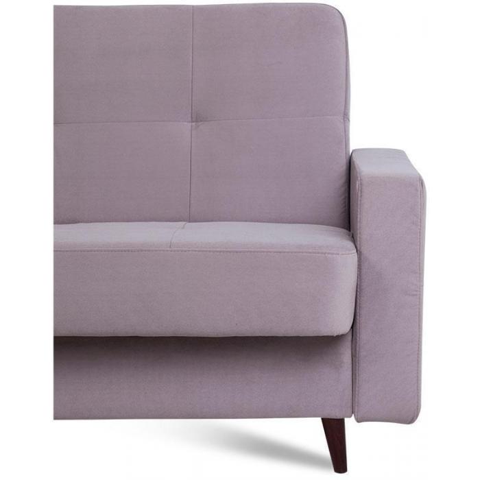 Tapicerka mebla została wykonana z wytrzymałych materiałów. Estetyczne wykończenie kanapy oraz jej prosta, klasyczna budowa pozwolą zaaranżować wnętrze pod względem wizualnym w każdym stylu. Drewniane nóżki barwione na kolor orzech sprawiają, że mebel nie wydaje się być tak masywny.