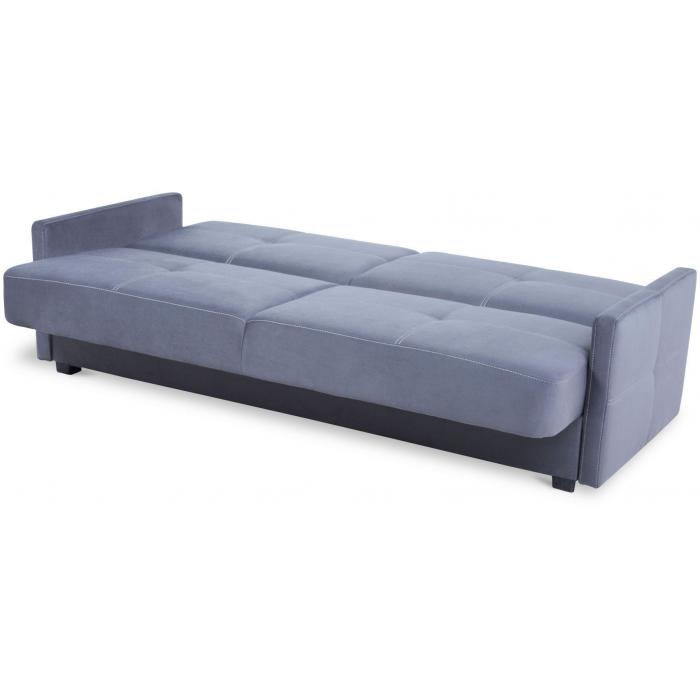 Rozkładana kanapa Zafira posiada zalety funkcji spania. Funkcja spania o wymiarach 124x190cm zapewni dodatkową przestrzeń w salonie bądź w innym pomieszczeniu w domu. Wypełnienie wersalki to sprężyny faliste oraz pianka, co zapewni pełen komfort relaksu i wypoczynku. Dodatkowe miejsce zapewnia pojemnik na pościel, który pozwala na schowanie pościeli, koca, poduszek lub innych przedmiotów.
