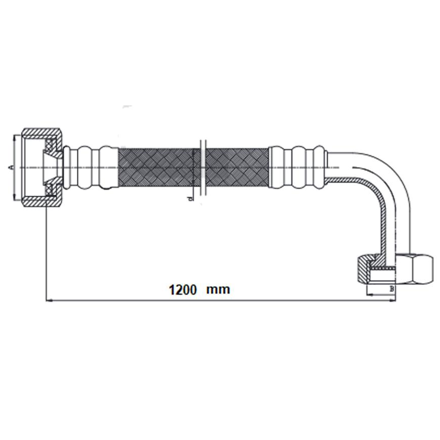Materiał i konstrukcja: Wężyk wykonany jest z oplocie stalowym ze stali nierdzewnej, co zapewnia trwałość i odporność na korozję. Końcówki węża są gięte pod kątem 90 stopni, co ułatwia instalację w różnych miejscach.
