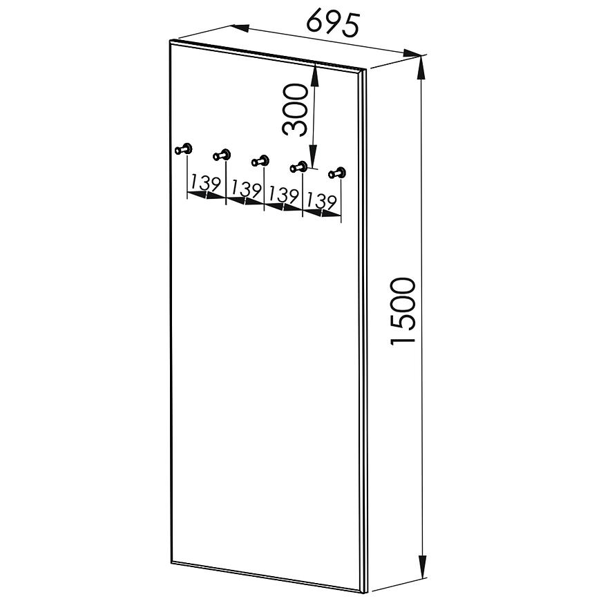 Z szerokością 70 cm, wysokością 150 cm i głębokością 3 cm, ten wieszak jest doskonałym rozwiązaniem dla tych, którzy pragną funkcjonalnego i stylowego miejsca do przechowywania ubrań. Jego kompaktowe rozmiary pozwalają na łatwe wpasowanie się w różne przestrzenie.