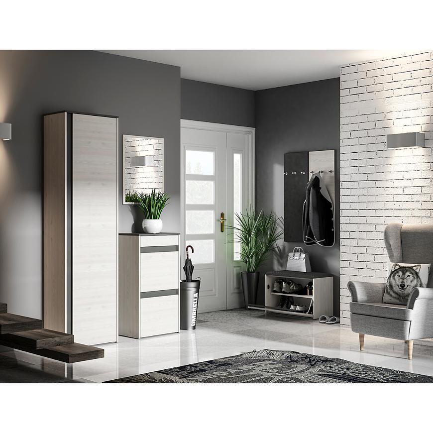 Wieszak wykonany jest z wysokiej jakości płyty wiórowej laminowanej, co gwarantuje nie tylko solidność, ale również trwałość. Jego eleganckie wykończenie w matowym szarym kolorze nadaje wnętrzu nowoczesnego charakteru, jednocześnie zachowując subtelność i uniwersalność.