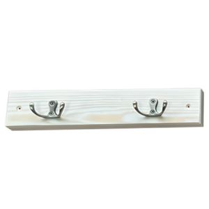 Dwa solidne, metalowe uchwyty umieszczone na drewnianej podstawie zapewniają trwałość i wygodę użytkowania, umożliwiając zawieszenie odzieży wierzchniej, toreb, czy kluczy. Dzięki temu wieszak stanowi praktyczne rozwiązanie do codziennego przechowywania, ułatwiając organizację przestrzeni i jednocześnie pełniąc funkcję dekoracyjną. Wykończenie matowe nadaje mu subtelny i elegancki charakter, który doskonale współgra z naturalnym wyglądem sosny, wzmacniając efekt przytulności i ciepła w pomieszczeniu.