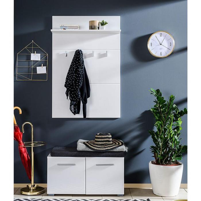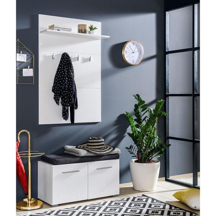 Szafka na buty z miękkim siedziskiem to nie tylko funkcjonalne rozwiązanie, ale także wygodne miejsce do zdejmowania i zakładania obuwia. To również idealne miejsce do przechowywania butów oraz innych akcesoriów. Kombinacja miękkiego siedziska i białego błyszczącego frontu nadaje tej szafce elegancki wygląd.