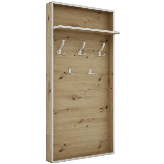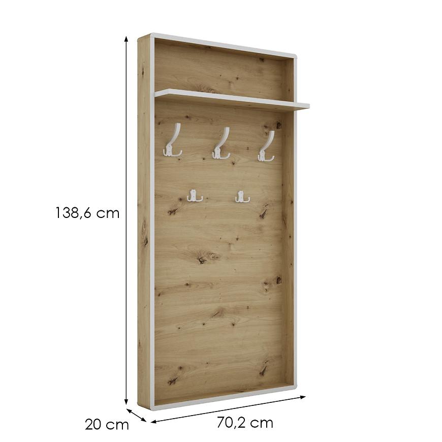 Materiał wykonania - płyta wiórowa laminowana - zapewnia nie tylko solidność, ale także trwałość wieszaka. Odporny na uszkodzenia i łatwy w utrzymaniu w czystości, ten materiał sprawia, że wieszak zachowa swój wygląd na długi czas. To rozwiązanie dla tych, którzy cenią sobie praktyczność bez rezygnacji z estetyki.