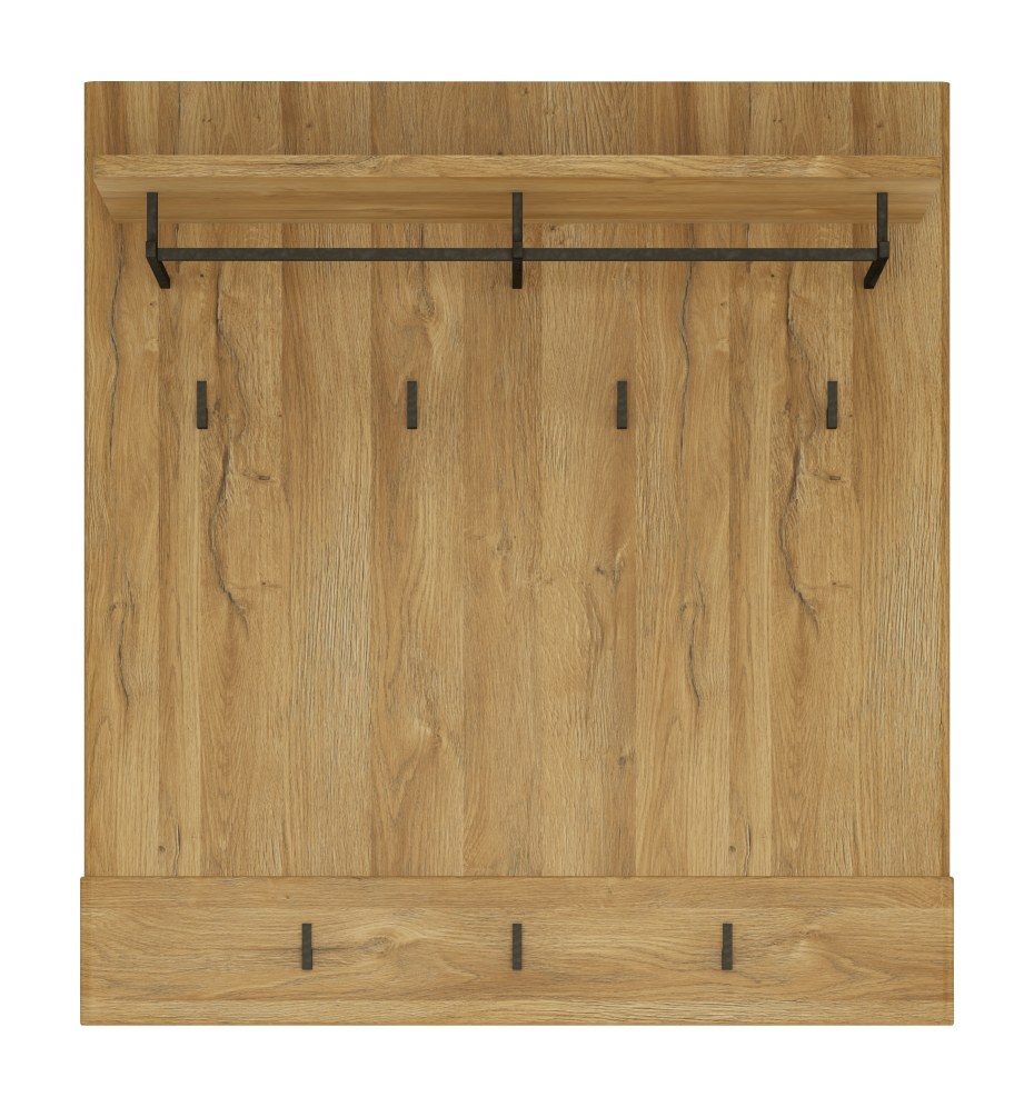 Mebel został wyposażony w siedem wytrzymałych haczyków, które pomieszczą kurtki, płaszcze, torby czy plecaki. Obok nich znajduje się długi drążek, na którym można zawiesić ubrania wymagające wieszaka, takie jak marynarki, garnitury czy okrycia wierzchnie z delikatniejszych materiałów. Takie rozwiązanie pozwala na wygodne przechowywanie dużej ilości odzieży, niezależnie od pory roku.