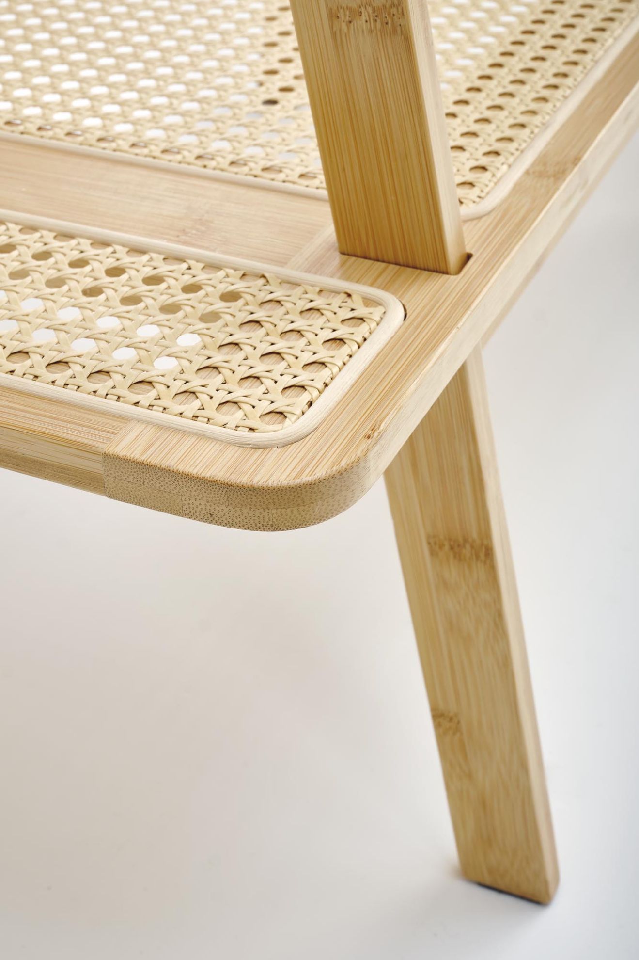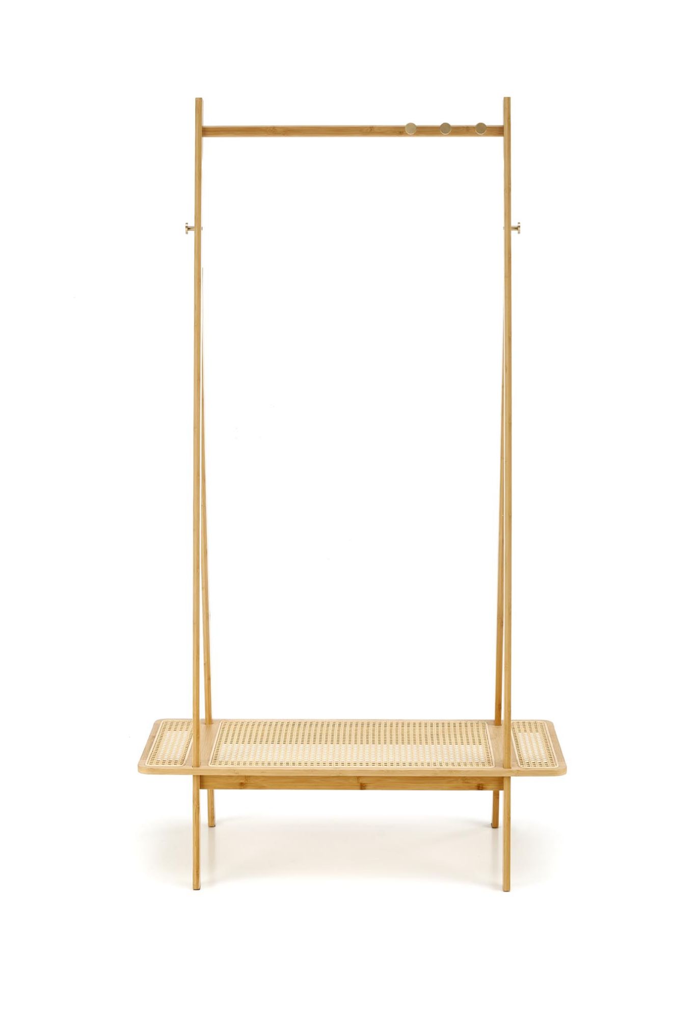Dodatkowym elementem wieszaka jest rattan naturalny, który tworzy półki i ozdobne elementy. Rattan dodaje wieszakowi lekkości i egzotycznego uroku. Jego delikatna struktura i kolor naturalny doskonale komponują się z drewnem bambusowym, tworząc spójną całość.