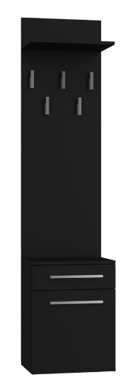 Czarny Wieszak Holmes z półką i szafką – praktyczny mebel do nowoczesnych wnętrz