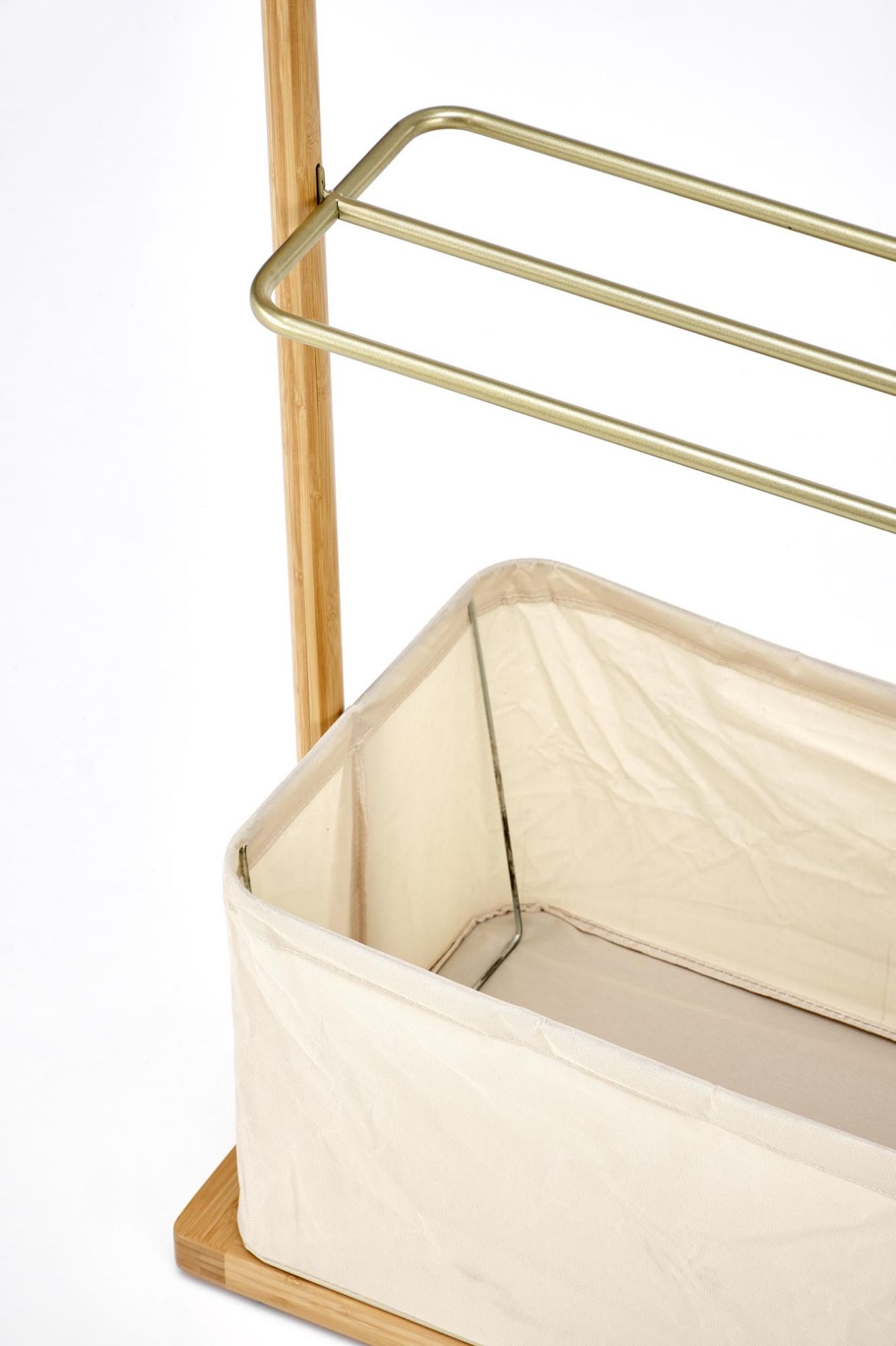 Tkanina użyta w tej konstrukcji dodaje wieszakowi wyjątkowej funkcjonalności. Możesz na niej zawiesić ubrania, torby, czy akcesoria, nie martwiąc się o zarysowania czy odkształcenia. Tkanina w delikatnym odcieniu beżu doskonale komponuje się z naturalnym bambusem i dodaje całości subtelności.