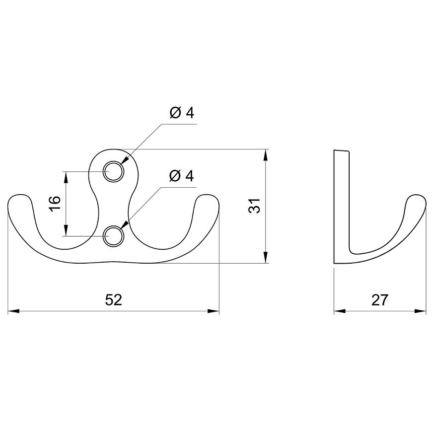 Wieszak meblowy W005 w kolorze patyna mosiądz to klasyczny dodatek, który doskonale podkreśli charakter wnętrz w stylu retro lub vintage. Wykonany z solidnego stopu ZnAl, łączy trwałość z estetycznym wykończeniem. Dzięki kompaktowym wymiarom – 52 mm szerokości i 31 mm wysokości – sprawdzi się zarówno w małych, jak i większych przestrzeniach. Łatwy montaż przykręcany zapewnia stabilność i wygodne użytkowanie.