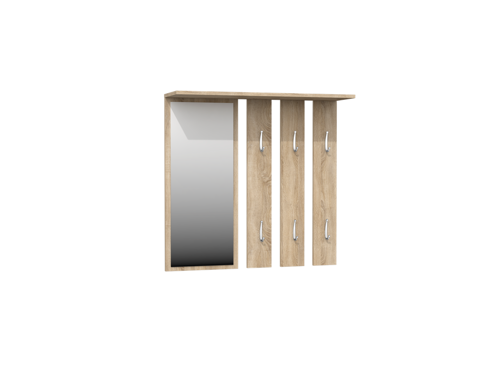 Wieszak Opi łączy funkcjonalność, estetykę i trwałość. Duże lustro, praktyczne półki i 6 wieszaków sprawiają, że każdy przedpokój zyskuje wygodne miejsce do przechowywania ubrań i drobnych przedmiotów. Kompaktowe wymiary i uniwersalny kolor dąb sonoma sprawiają, że wieszak pasuje zarówno do małych, jak i dużych pomieszczeń. Możliwość połączenia z szafką Opal umożliwia stworzenie kompletnej garderoby w przedpokoju.