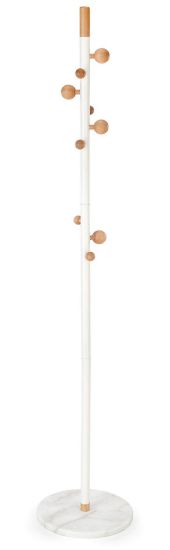 Kolor wieszaka to delikatny biały, który doskonale komponuje się z naturalnym wykończeniem drewna. Kombinacja bieli i naturalnego drewna tworzy harmonijną równowagę między nowoczesnym a rustykalnym stylem, co pozwala wkomponować ten wieszak w różne wnętrza - od nowoczesnych apartamentów po przytulne domy wiejskie.