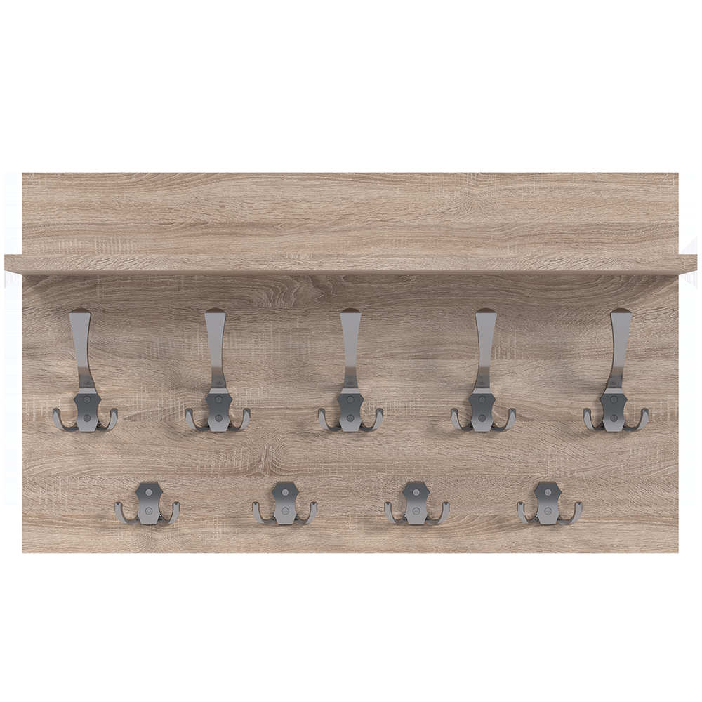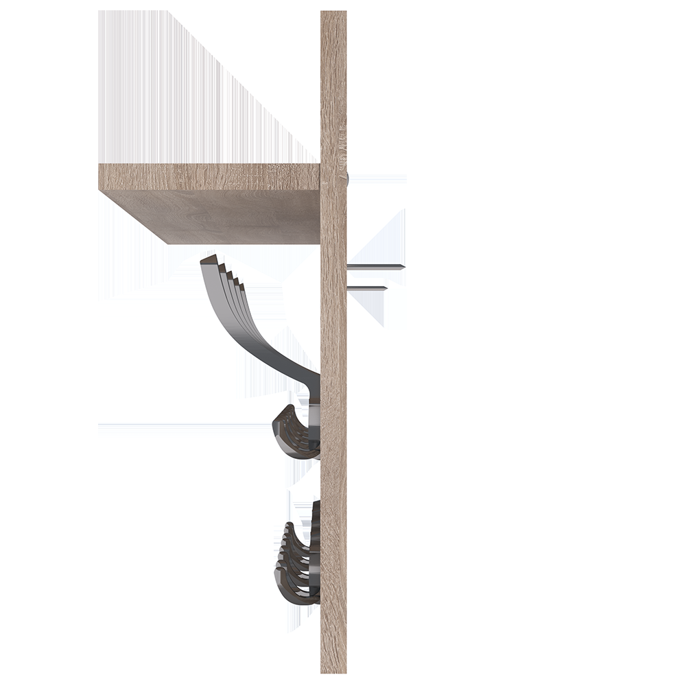 Wieszak Rita dąb sonoma idealnie wpasuje się w aranżacje, nadając przy tym klasyczny i elegancki design. Jest to praktyczny mebel, który uporządkuje Twój przedpokój bądź inne, dowolne pomieszczenie. Dzięki swojej funkcjonalności, pomieści wiele ubrań czy innych drobiazgów, zajmując przy tym mało miejsca. Na stabilnej, górnej półce, można umieścić kwiaty w doniczkach bądź inne, cięższe przedmioty.