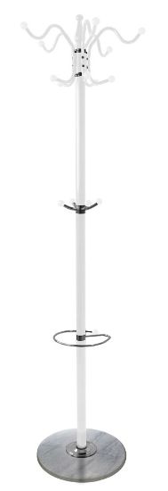 Wieszak stojący obrotowy idealnie wpasuje się w każdą aranżację. Posiada 10 obrotowych haczyków na górnej części wieszaka oraz 4 dodatkowe na ubrania dla dzieci. Metalowa lakierowana konstrukcja zapewnia stabilność, a dwupoziomowe rozmieszczenie haczyków oraz uchwytu pozwoli na funkcjonalną organizację przestrzeni. Dodatkowo wieszak posiada uchwyt, który będzie kolejnym miejscem do przechowywania np. parasola. Dodatkowym atutem jest marmurowa podstawa o średnicy 37 cm.