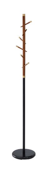 Wieszak wykonany jest z wysokiej jakości stali, która zapewnia trwałość i stabilność konstrukcji. Chromowana stal w połączeniu z elementami malowanymi proszkowo w kolorze orzechowym, czarnym i złotym nadaje wieszakowi elegancki i nowoczesny wygląd.