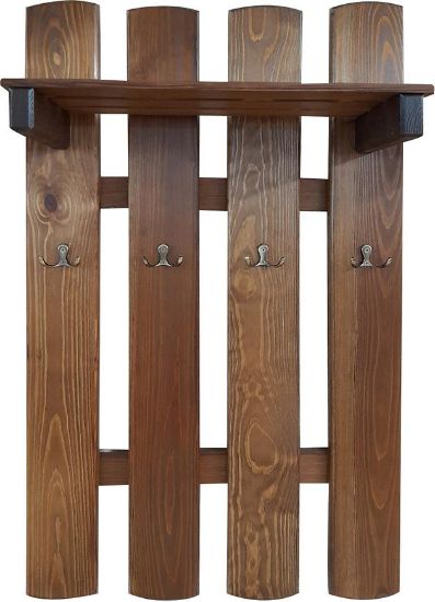 Wieszak z półką i czterema metalowymi uchwytami to praktyczny i stylowy dodatek do przedpokoju, który wprowadza elegancję i klasyczny charakter do każdego wnętrza. Wykonany z wysokiej jakości drewna, prezentuje naturalne, drewnopodobne wybarwienie, które doskonale komponuje się z różnorodnymi aranżacjami, dodając przestrzeni przytulności i harmonii. Dzięki solidnej konstrukcji oraz starannemu wykończeniu matową powłoką, wieszak jest odporny na codzienne użytkowanie, zapewniając trwałość i estetyczny wygląd na długi czas.