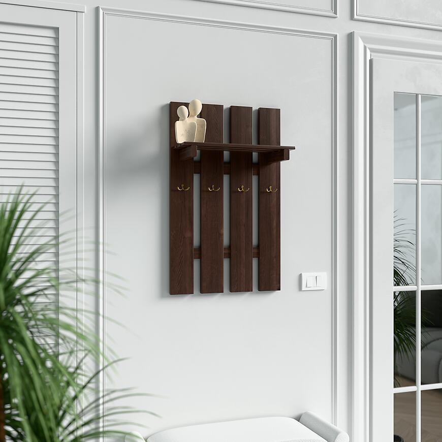Model z półką i czterema uchwytami sprawdzi się w przedpokoju. Klasyczny design oraz funkcjonalność wieszaka z półką 4 uchwyty Orzech czynią go praktycznym i eleganckim dodatkiem do każdego wnętrza.