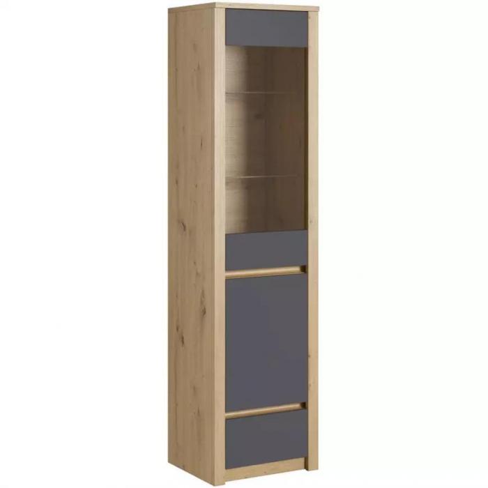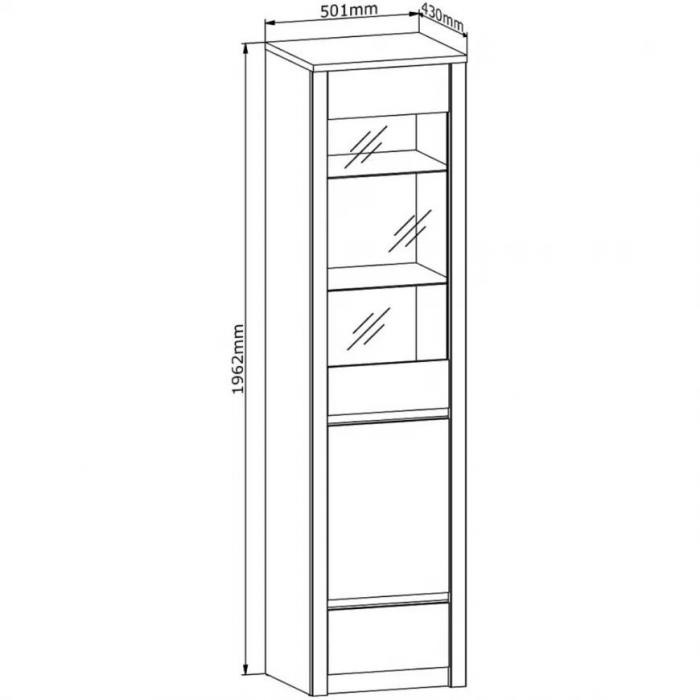 Witryna Malta W1D posiada dwie półki za przeszklonym frontem, pojemną szafkę i szufladę na drobiazgi. Istnieje możliwość dokupienia oświetlenia LED. Szuflada posiada metalowe, kulkowe prowadnice z pełnym wysuwem. Wykonana z płyty laminowanej, odpornej na uszkodzenia. Wyposażona bezuchwytowy system otwierania. Produkt w paczkach do samodzielnego montażu.