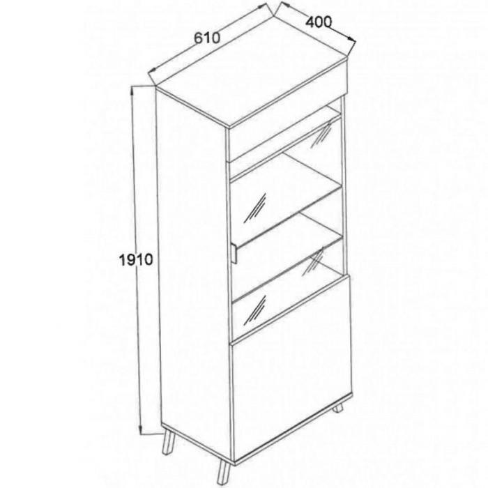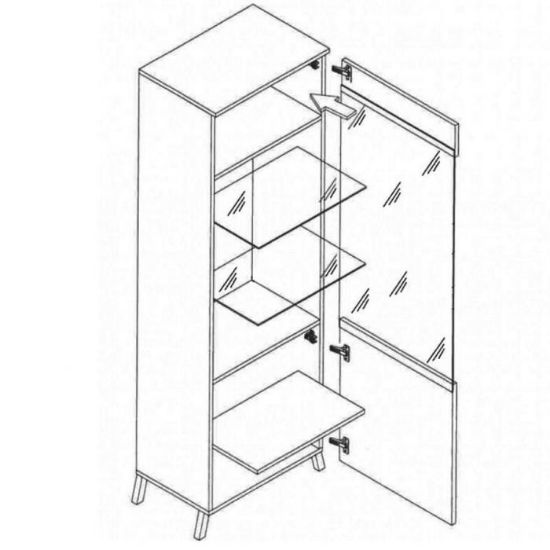 Wnętrze witryny John składa się z kilku poziomów półek, umożliwiających logiczne rozmieszczenie przedmiotów. Brak szuflad zwiększa przestrzeń użytkową, a uchylne drzwi ułatwiają dostęp do całej zawartości. Witryna doskonale nadaje się do eksponowania dekoracji, szkła czy porcelany, przy zachowaniu porządku i harmonii w pomieszczeniu.